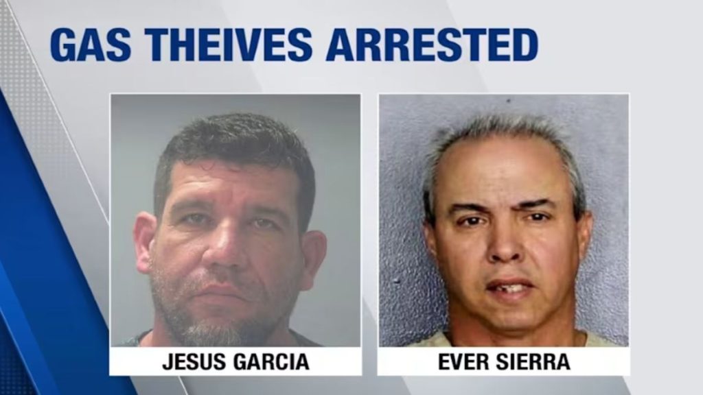 The suspects, Jesus E. Garcia and Ever Sierra, were caught on security footage breaking into fuel pumps at a Love’s Travel Stop in Milton with bolt cutters and manipulating internal mechanisms to siphon nearly 500 gallons of diesel, causing approximately $3,500 in damage, according to investigators.