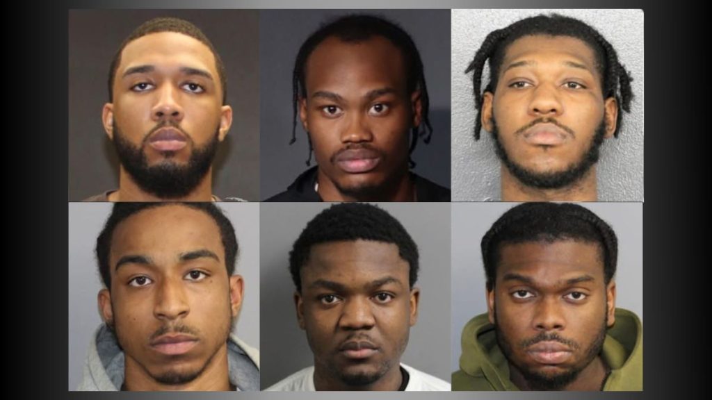 The accused, all from Brooklyn, New York, were identified as Benshley Francillon, 24, Zamo Examo, 21, Jaden Labissiere, 21, Cedrick Alcime, 20, Walton Lawrence, 20; and Adebola Olowu. A seventh person, Michael Lawrence, 22, also from Brooklyn, has been charged but remains at large.