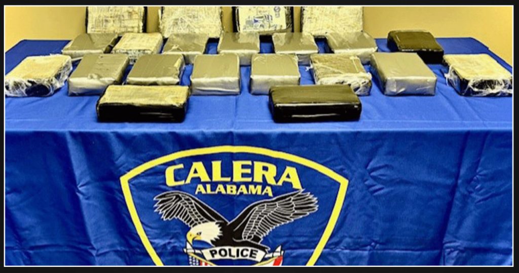 Calera Police Chief David Hyche said a patrol officer stopped a vehicle going through town last week because it did not have a tag. During the stop, Hyche stated, “Probable cause for a search was evident,” which resulted in the finding of 46 pounds of cocaine.
