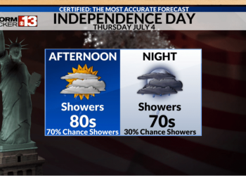 According to the latest weather updates, the 13 News viewing area is likely to experience showers and thunderstorms on the...