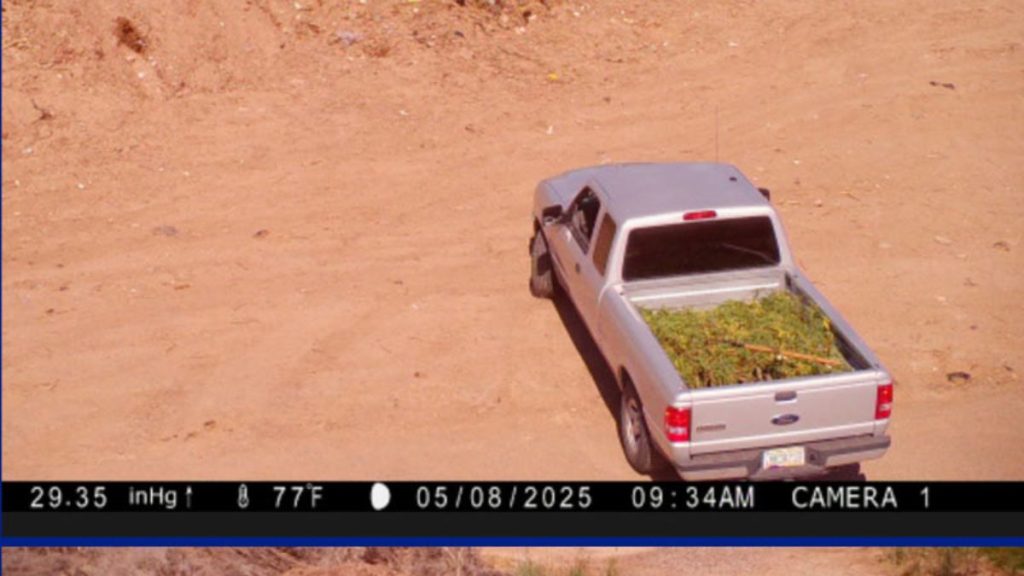 Because the region is notorious for illicit dumping, Public Works officials earlier installed a camera to monitor the situation. On May 8, the camera recorded still shots of a silver truck driving away from the debris pile.