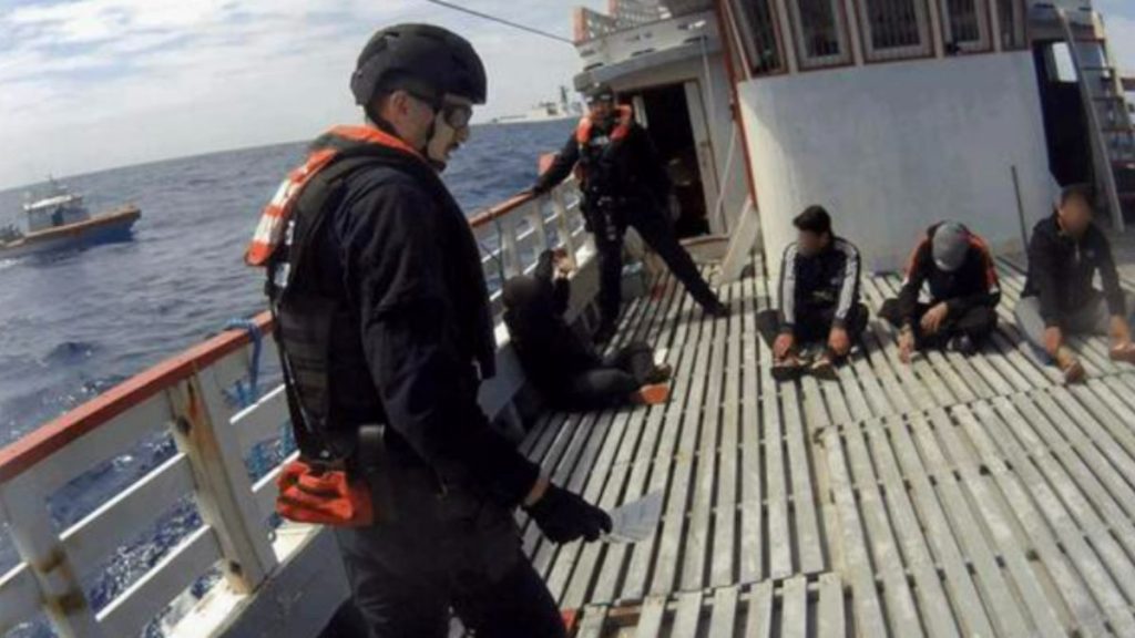 On April 12, the Calhoun spotted a “suspicious” fishing vessel “exhibiting behavior consistent with narcotic trafficking” in international waters around 1,265 miles west of Las Palmas, Canary Islands. The crew launched a small boat to intercept the vessel.