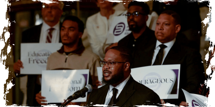 As an illustration of the challenges faced by students attending public school, he cited his own experience. Despite being a successful football player, he graduated with a second-grade reading level. It wasn’t until a bishop in North Carolina took him under his wing and provided mentorship that he was able to get on track academically and earn both his bachelor’s and master’s degrees.