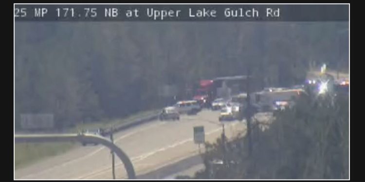At around 12:30 p.m. on Sunday, a crash was reported near the Upper Lake Gulch Road exit (172). As a result, all northbound lanes between Upper Lake Gulch Road and the Greenland exit (167) have been closed.