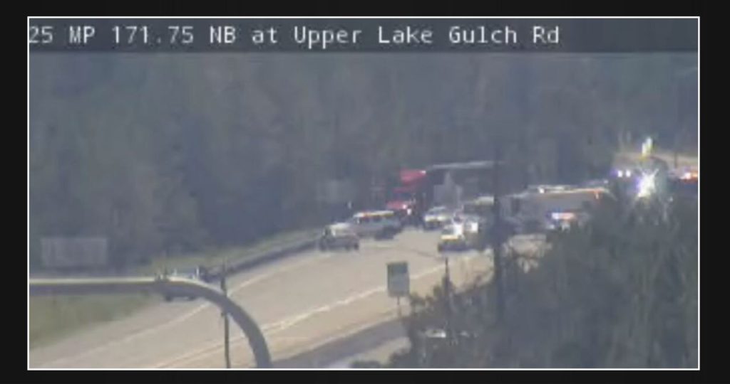 At around 12:30 p.m. on Sunday, a crash was reported near the Upper Lake Gulch Road exit (172). As a result, all northbound lanes between Upper Lake Gulch Road and the Greenland exit (167) have been closed.