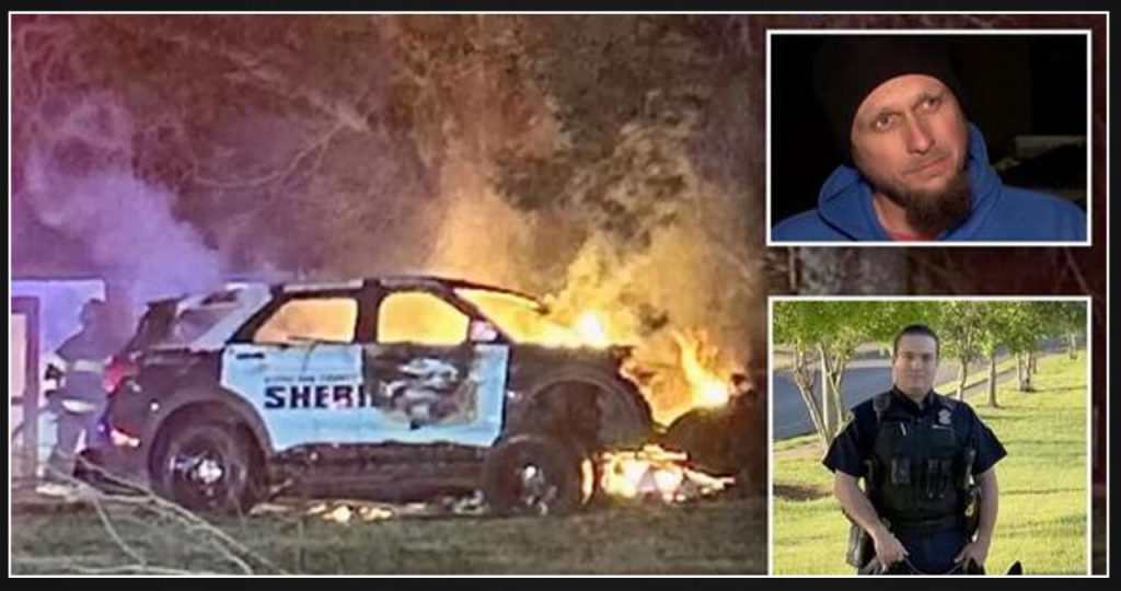 During the chase, Deputy Robert Taylor’s vehicle collided head-on with a tree, resulting in the car engulfed in flames.