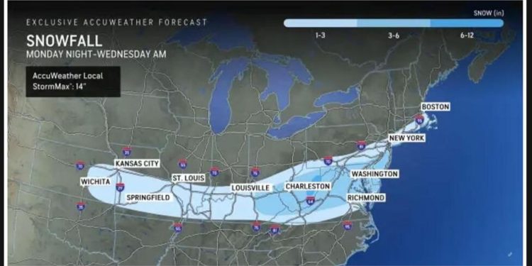 The southern parts of the Northeast are anticipated to experience the heaviest snowfall, with expected widespread totals of 3 to 6 inches. (Refer to the first image above from AccuWeather.)