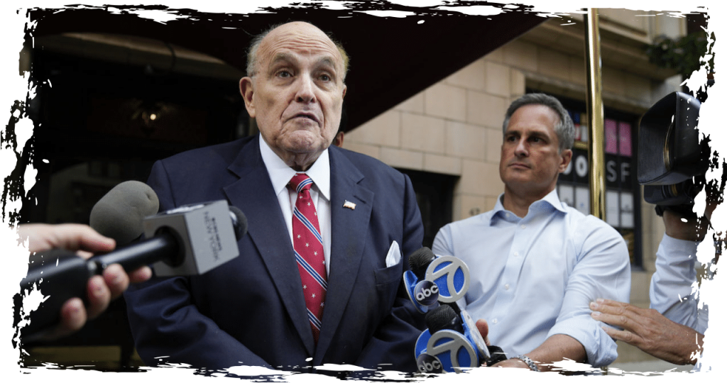 The image shows Rudy Giuliani, the former Mayor of New York, leaving his apartment building in New York on Wednesday, August 23, 2023. He was captured by the lens of AP photographer Seth Wenig while he was speaking to reporters.