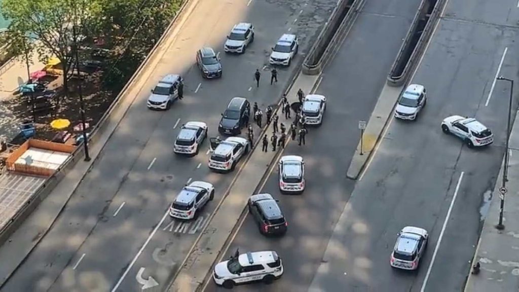 Police used license plate readers to follow the vehicle’s journey into the Loop. The suspect’s car became immobilized when he collided with several cars near Michigan and Wacker around 10:17 a.m., and authorities apprehended him immediately. A firearm was recovered from the vehicle.