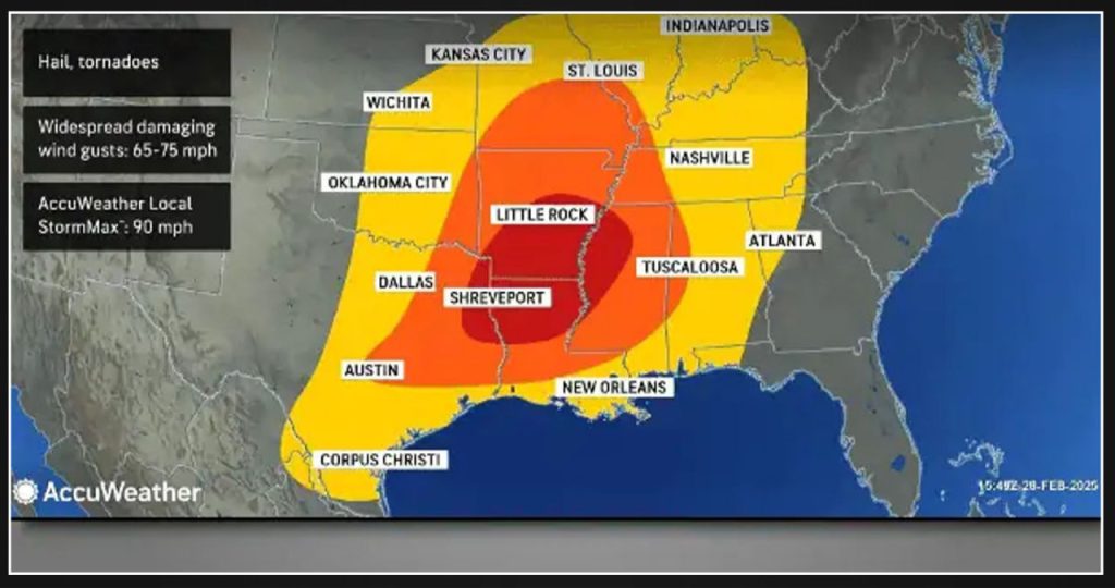 AccuWeather meteorologists are issuing a warning about a substantial severe weather threat that will affect the South Central and Southeast United States in the upcoming week. The storm system, which will develop over the Pacific Ocean during the weekend, is predicted to bring a hazardous mix of tornadoes, hail, and destructive wind gusts starting from Tuesday.