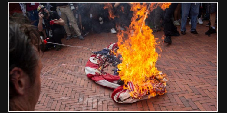 In a statement released on Wednesday, Vice President Kamala Harris expressed her condemnation of the protesters who burned an American flag and showed their support for Hamas near the U.S. Capitol. The demonstrators were protesting Israeli Prime Minister Benjamin Netanyahu’s address to Congress. Harris stated that such actions have no place in the country and that hate and violence should not be tolerated in any form.