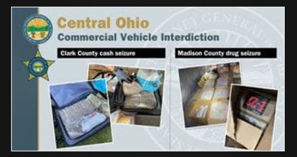 Agents from the Major Drug Interdiction Task Force and Ohio State Highway Patrol Troopers carried out a routine stop on a commercial vehicle on I-70 in Madison County on August 3.
