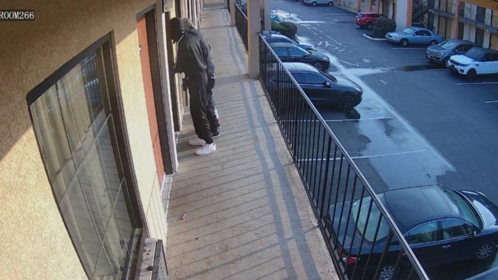 At 6:55 a.m., three suspects emerged from the Infiniti. Officers claim the suspects approached the room with firearms and masks to hide their faces before using the key card that Day is accused of hiding for them.