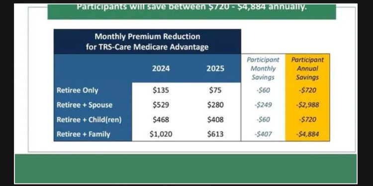 Retirees who are part of TRS can anticipate saving anywhere between $720 to $4,884 annually on premiums.