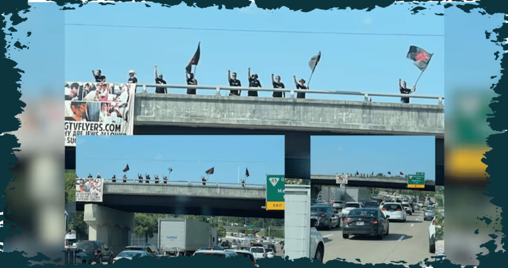 On Monday afternoon, a neo-Nazi group held a demonstration on an overpass that overlooks Interstate 65 in Nashville, Tennessee.