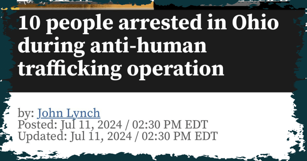 On July 9 and 10, the Mahoning Valley Human Trafficking Task Force conducted a sting operation at the request of the Steubenville Police Department. The operation received additional support from the Jefferson County Sheriff’s Office, Jefferson County Prosecutor’s Office, and the Harriet Tubman Movement.