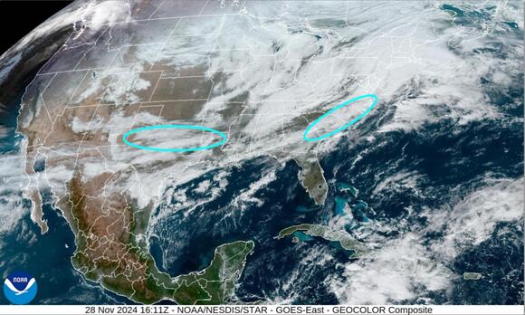 In addition, frost and freeze warnings and watches are in effect from parts of Louisiana, Mississippi, Alabama, Georgia, South Carolina, and into the southeastern corner of North Carolina. Temperatures in these areas are expected to drop below freezing overnight.