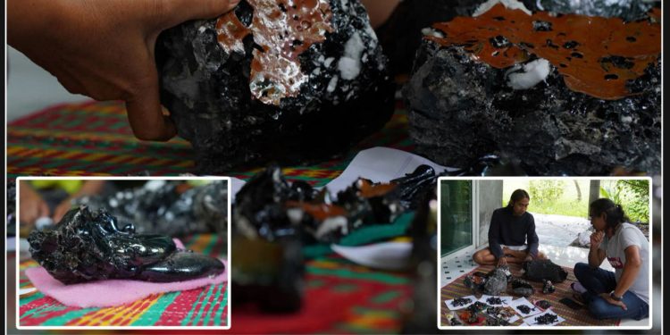 After a storm, the couple stumbled upon a collection of shiny, black rocks in their palm plantation. These rocks varied in size and weighed over 44 pounds in total.