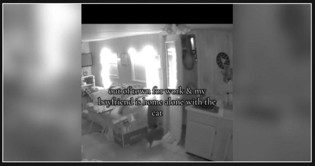 “In a text message, Ashley mentioned that she is currently out of town for work, leaving her boyfriend at home alone with their cat.”