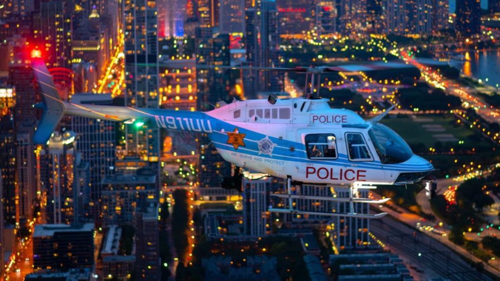 Five minutes after the Blackstone heist, a CPD ground unit spotted a black Mitsubishi, a vehicle frequently seen near robbery sites. A nearby CPD helicopter crew quickly began monitoring the car, which had fled from officers.