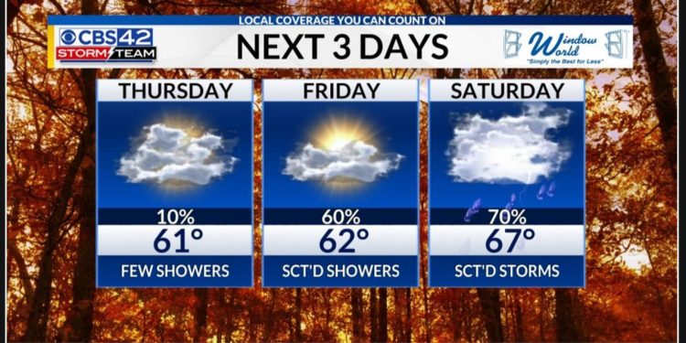 On Friday, the rain will intensify and spread across the day, starting in the morning in West Alabama. There will be a band of moderate to heavy rain, with a few intense downpours, gradually moving across the state. Although this is not expected to be a severe weather event, there is a possibility of localized flooding due to the slow movement of the rain. For those attending the Birmingham Bowl, be prepared for periods of rain with temperatures ranging from the lower 50s to the lower 60s.