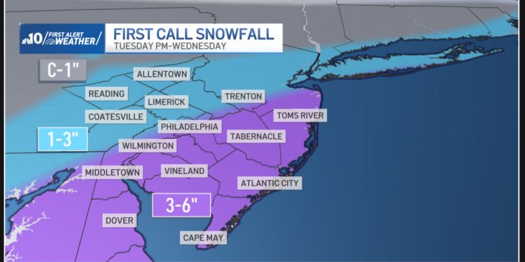 Snow to fall on Philly, Pennsylvania suburbs, NJ, and Delaware on Tuesday and Wednesday