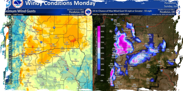 On Monday, the Tri-Cities can expect wind gusts of up to 47 mph, following a rainy night.