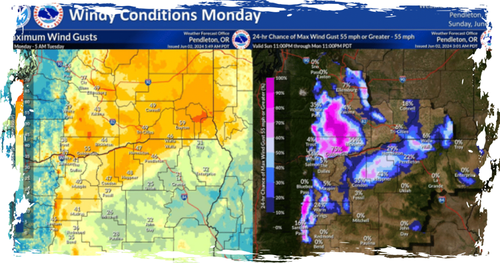 On Monday, the Tri-Cities can expect wind gusts of up to 47 mph, following a rainy night.