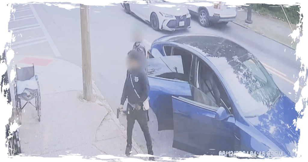 In an exclusive report by Michael Seiden from Channel 2, surveillance footage captured the victim on his way to the store when he was suddenly approached by four suspects in a Tesla. Although the video did not have any audio, it showed a potential altercation between the victim and the suspects. The footage also revealed that two of the suspects got out of the car while carrying guns.