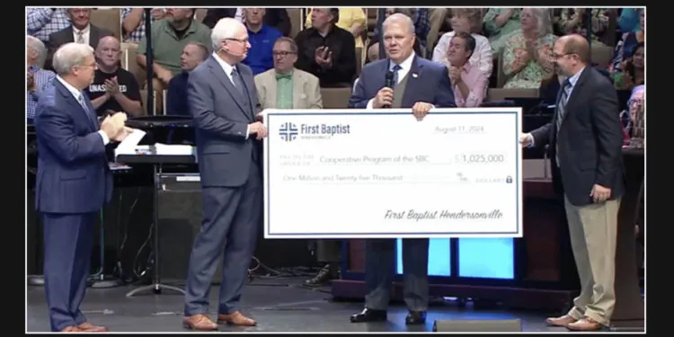 Hendersonville’s First Baptist Church has become Tennessee’s first church to receive $1 million in annual Cooperative Program gifts.