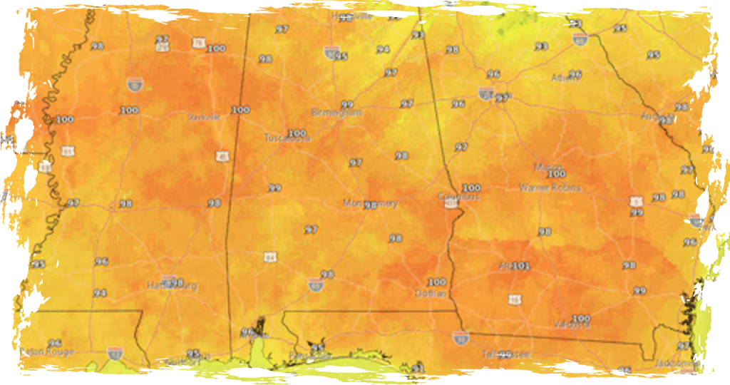 Today in Alabama, we can expect temperatures to soar once again into the 90s, with some areas possibly reaching or even surpassing the 100-degree threshold.