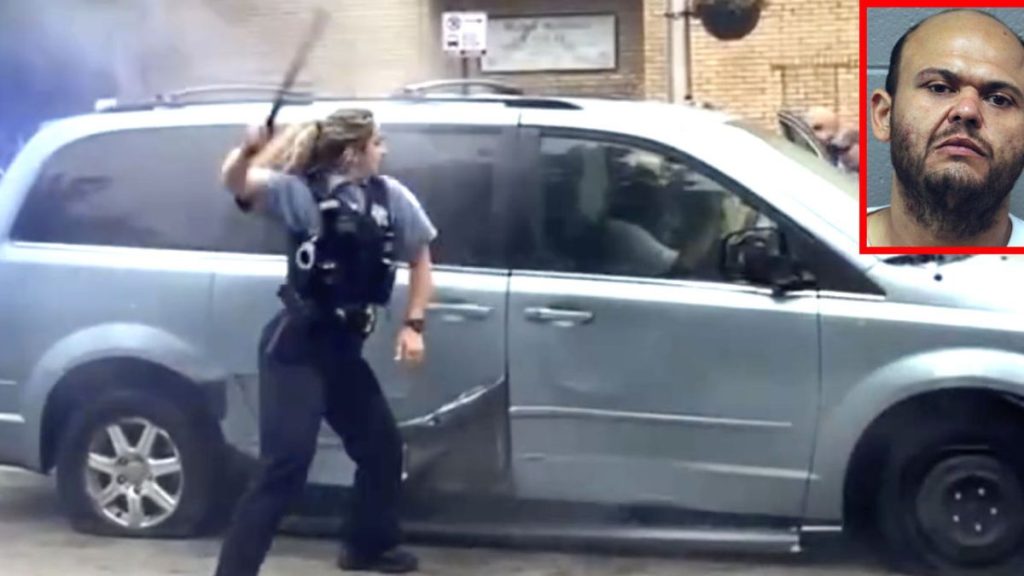 The video shows officers running to the van, one with a rifle pulled. Another officer attempted, unsuccessfully, to break the passenger window of the vehicle with her baton. Costello quickly found himself in handcuffs.