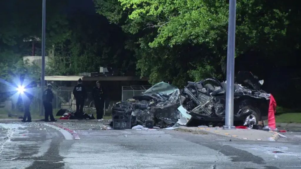 Dallas police responded to the crash on Elsie Faye Heggins Street shortly after 12:30 a.m. Wednesday.